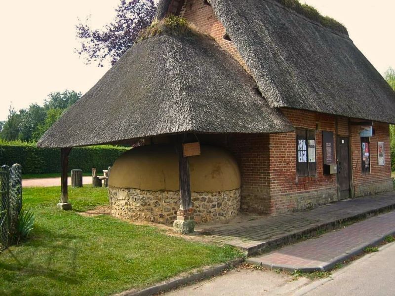Véritable « image d’Épinal » de la Normandie, la chaumière est la maison traditionnelle recouverte de chaume. Son architecture typique provient des ressources locales : l’ossature ainsi que les colombages sont issus des bois voisins, les tiges de roseaux de la vallée de Seine couvrent son toit, les fondations de la chaumière et son soubassement proviennent du silex et des blocs de calcaire du sous-sol environnant. Le torchis de remplissage est fabriqué à partir du limon. Les iris percent sur les faîtages.